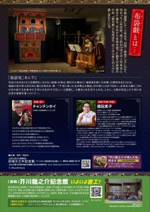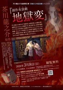■申込方法:往復はがき、または申込フォームでお申し込みください。 ・申込フォーム: https://docs.google.com/forms/d/1bRrtItqKa1Mk4Q15zLh52Q74cS2Szyuvnd472hRbdQc/viewform?edit_requested=true ・往復はがきの場合… 【往信用裏面】①イベント名②開催日・希望時間(どちらでもよい場合はその旨を明記)③住所④氏名(2名の場合は全員分)⑤電話番号⑥年齢 【返信用表面】応募者の住所・氏名 ■締切:2026年2月9日(月)必着 ◎限定販売:公演当日に限り、会場ロビーにて「芥川龍之介の嗜んだ味」と題した老舗和菓子店の菓子詰め合わせを販売します。詳細は決まり次第、ホームページ、Xでお知らせします。 (出店協力:元祖くず餅 船橋屋 ほか) |