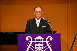 また、在校生からは、「芸術は財産づくりではない。人づくりである。」というシューマンの言葉を引用し、内面的な人間性の豊かさを育むために必要な、一般科目や多種多様な音楽科目を学ぶことの意義を示しました。