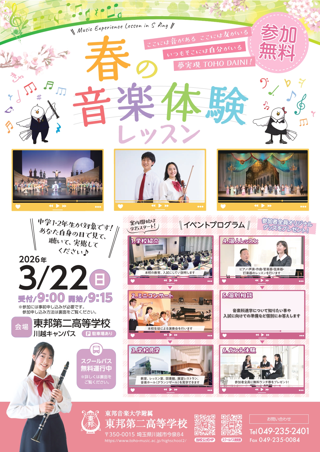東邦音楽大学附属 東邦第二高等学校 〒350-0015 埼玉県川越市今泉 84 TEL.049-235-2401 FAX.049-235-0084 |